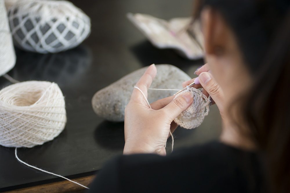 她想起小時候看著母親、阿姨,一邊編織,一邊聊天,互相陪伴吐露心事的美好光景,於是,召集一群熱愛編織的部落婦女,共享鉤、織、染、繡等纖維工藝的技巧,為了找回傳統價值,創作素材皆採用天然的材質,以苧麻為主,利用植物染取代化學染,就像過去的老人家那樣,在慢活中,體悟人生,做手工藝照顧生計之餘,心靈也獲得了治癒,更在勞動部提供就業機會的支持下,將腳步站得更穩健。