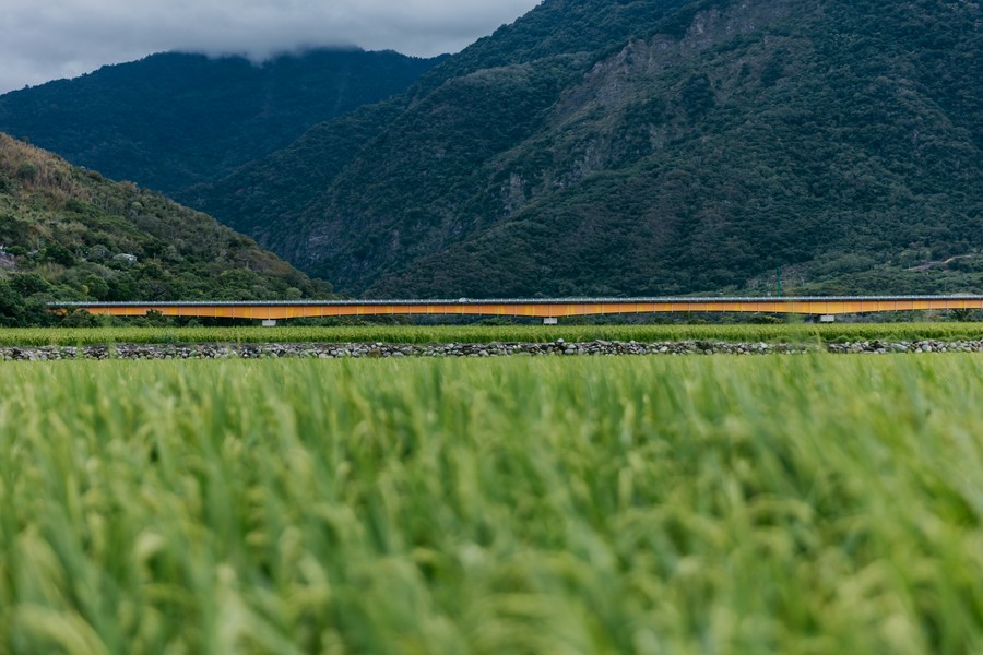 初來橋旁,放眼望去是遼闊田野,稻浪隨著山風而搖曳起伏,一旁關山大圳的滾滾水聲豐沛而磅礡;沿著初來橋,駛入小巧可愛的初來部落,眼前展現的是樸實而悠閒的美好日常。