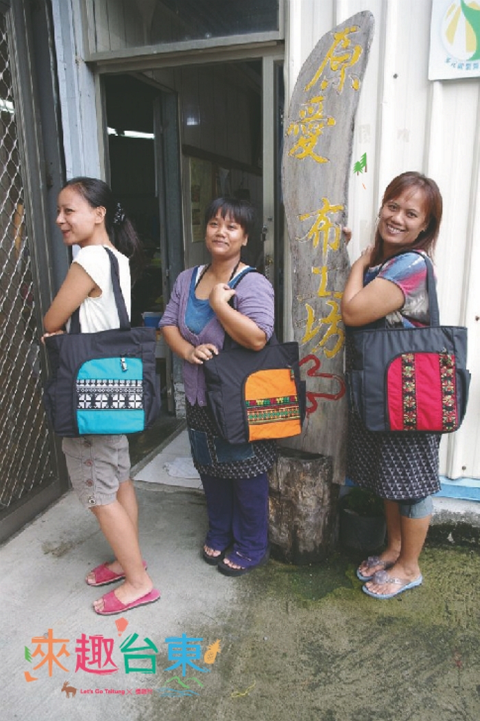 位於台東最美的車站旁原愛布木工坊,是前新興國小校長鄭漢文在職期間成立的工坊,由部落媽媽著手創作各式手工布包,透過布坊的經營,讓失業的原住民家長可以有所發揮,並有穩定的家庭收入來源。