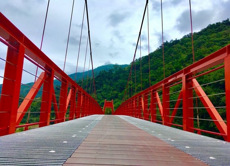 由賓茂部落再往內走,約15分鐘車程就是歷坵部落,金峰鄉與太麻里鄉聯手打造的千萬級「魯拉克斯吊橋」,紅豔色的外觀設計,加上兩岸綠意盎然的山林美景與溪流,讓遊客能夠同時體驗兩鄉獨特的人文采風,怎麼拍都美!一趟讓你拍好拍滿。