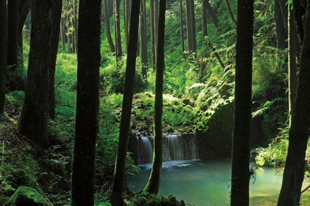 阿里山山脈為台灣五大山脈之一,阿里山並不是一座山,而是泛指這個山區;自古擁有豐沛的紅檜與扁柏,然從 191 2年起成為台灣最具規模的林場,一直到 1960 年代末期為止。歷經日本、國民政府的採伐後,原始檜木林幾乎伐盡,現今存有第一期與第二期巨木群棧道近四十株的紅檜巨木,讓人緬懷過去神木林的壯闊神聖。其中最高的「阿里山香林神木」,高 45 公尺,樹圍 12.3 公尺,樹齡約2300年,是到訪阿里山的必遊之處。