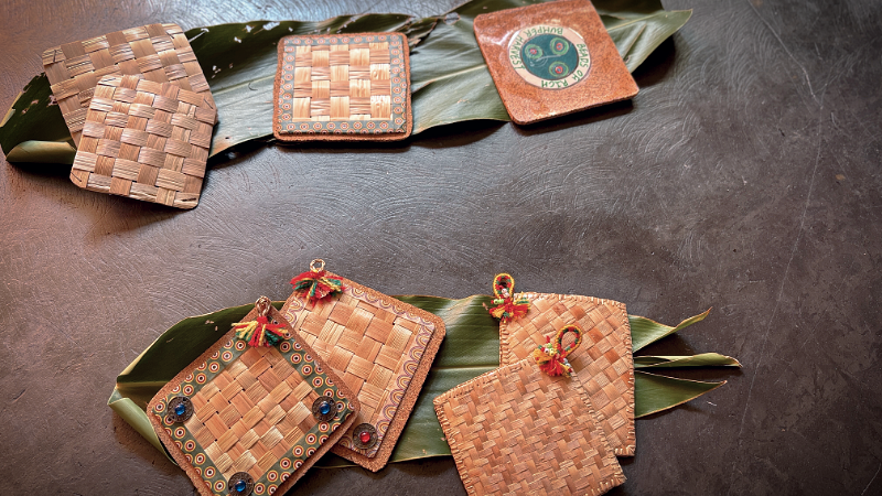 月桃,是山林裡溫柔而堅韌的植物。葉脈清晰如時間的紋路,氣息淡雅卻長存。透過編織,我們以雙手與自然對話,將植物的纖維化作生活的美感,編進祝福、記憶與家的形狀。