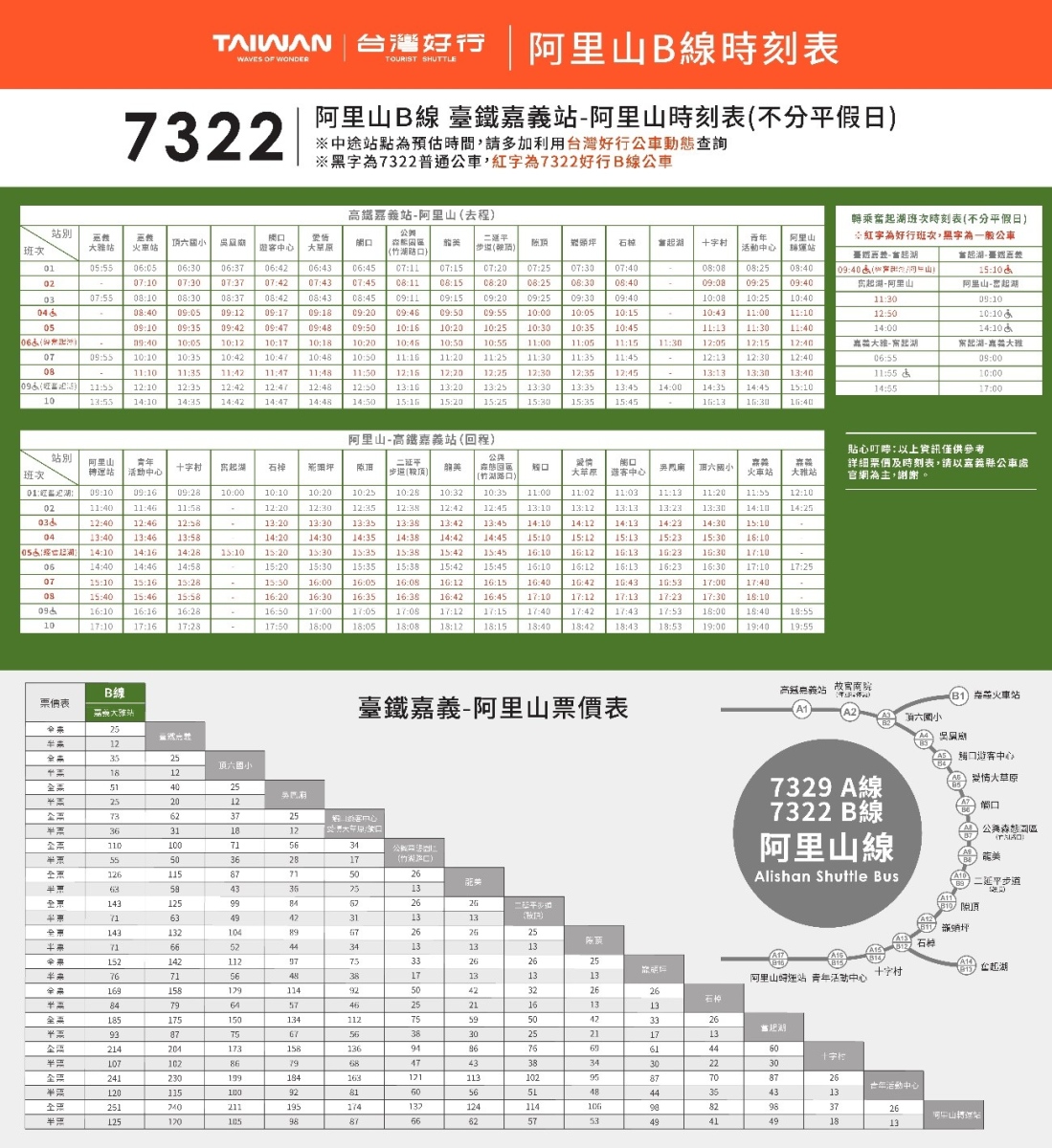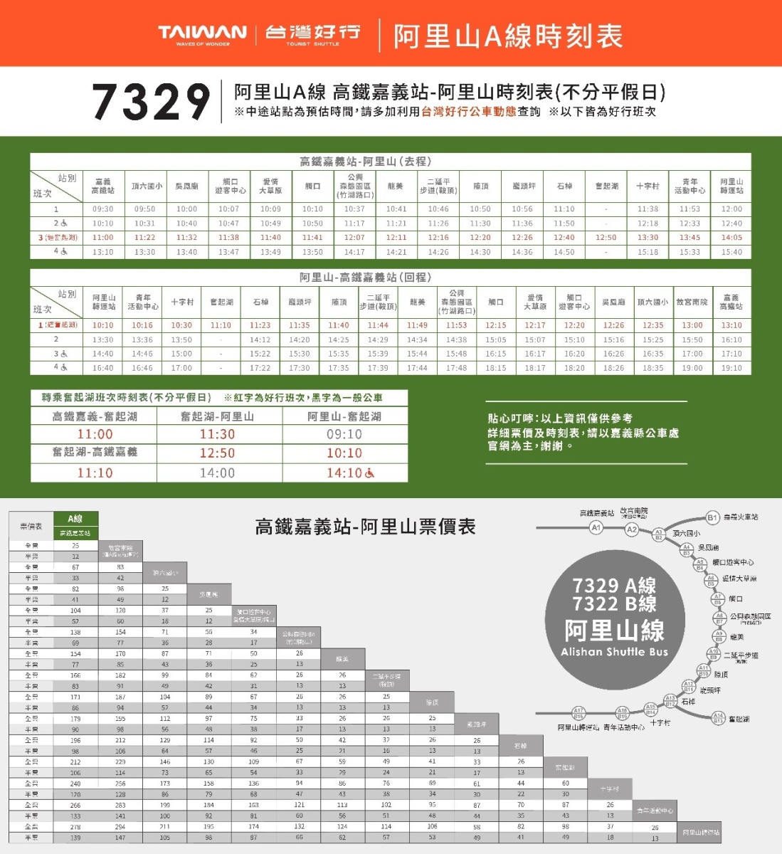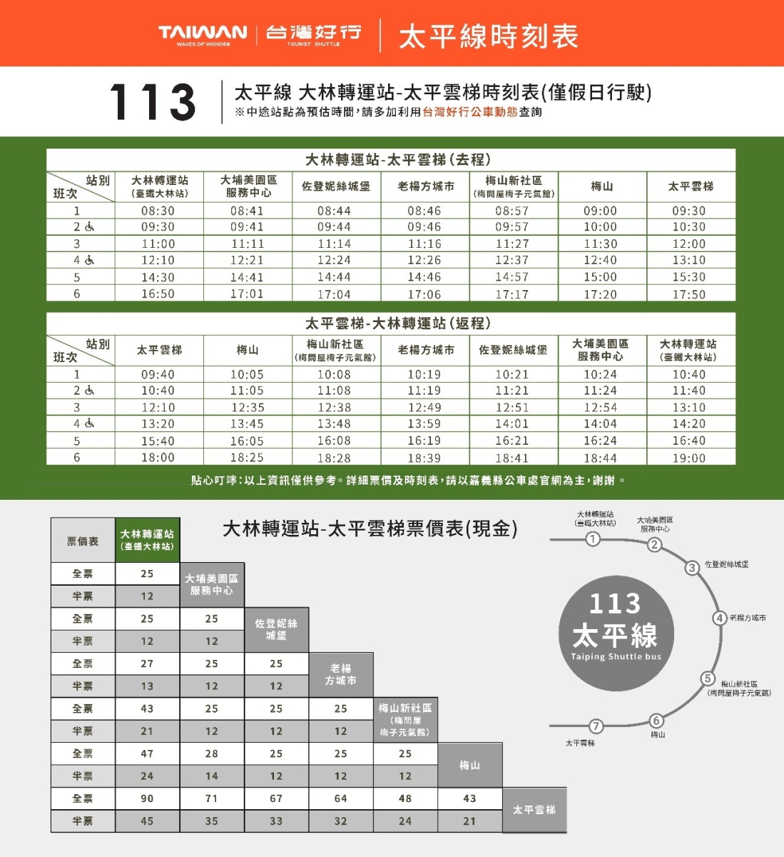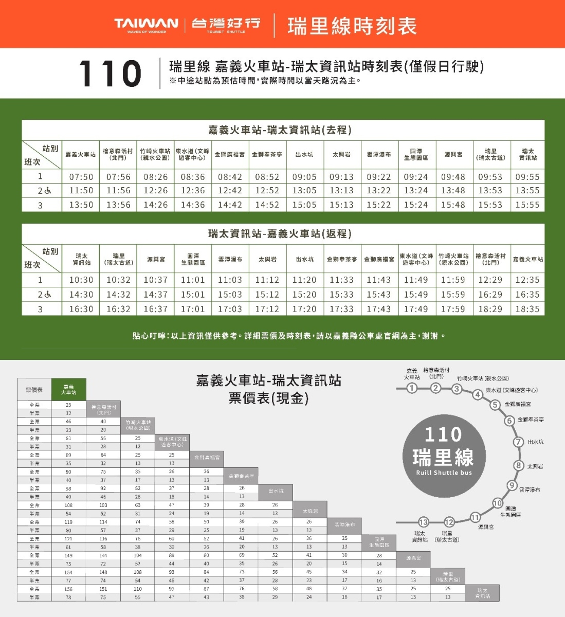 6.台灣好行班次、時間及詳細規則請參照官網網站公告。