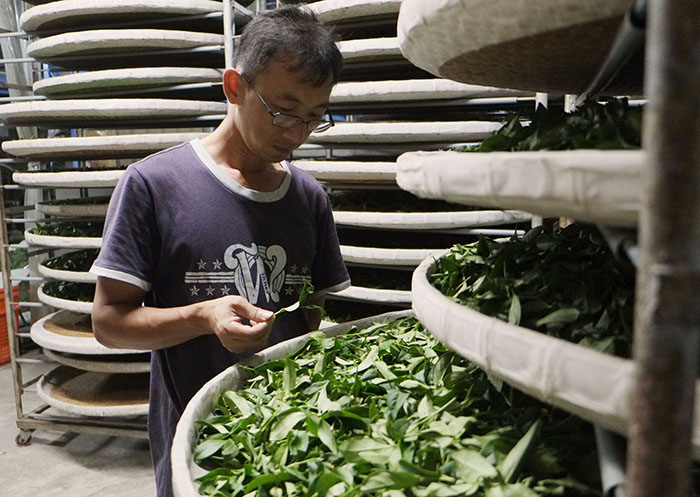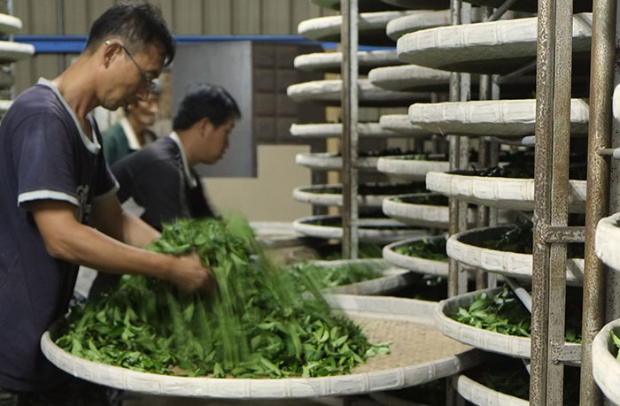 從茶女的手刀摘工、製茶師的日光萎凋攪拌、室內萎凋攪拌、浪菁到炒菁