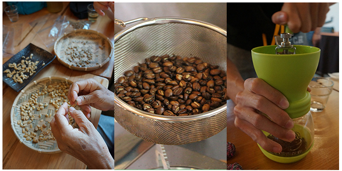 將咖啡豆咖啡豆的生產流程轉化為體驗程序,從脫殼去皮到烘豆,園主還會教你怎麼分辨好豆與壞豆,在動手搖一搖烘焙咖啡,加以製成專屬的濾掛式咖啡包。