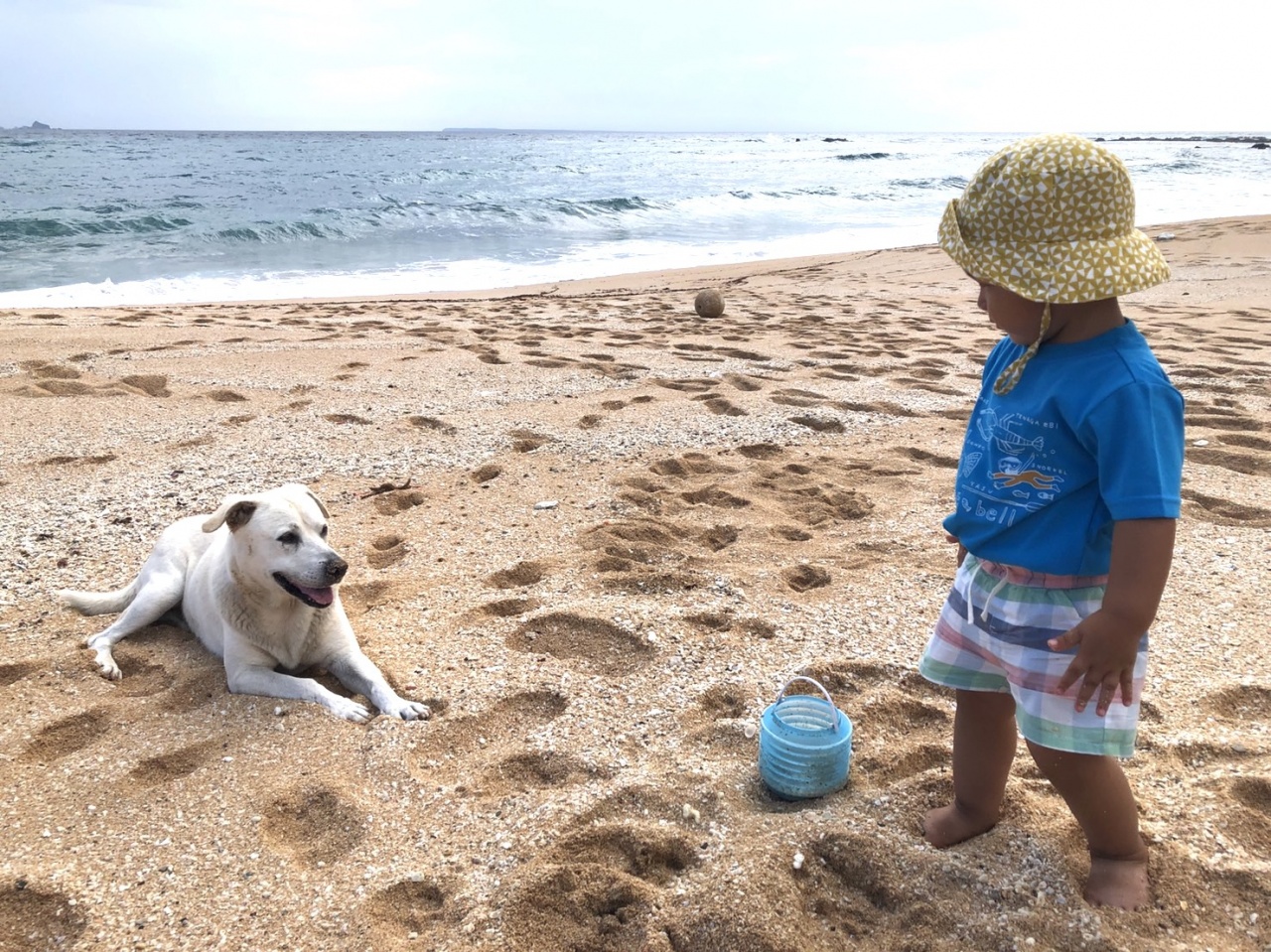 民宿前網垵口沙灘與可愛親人的島狗呆呆