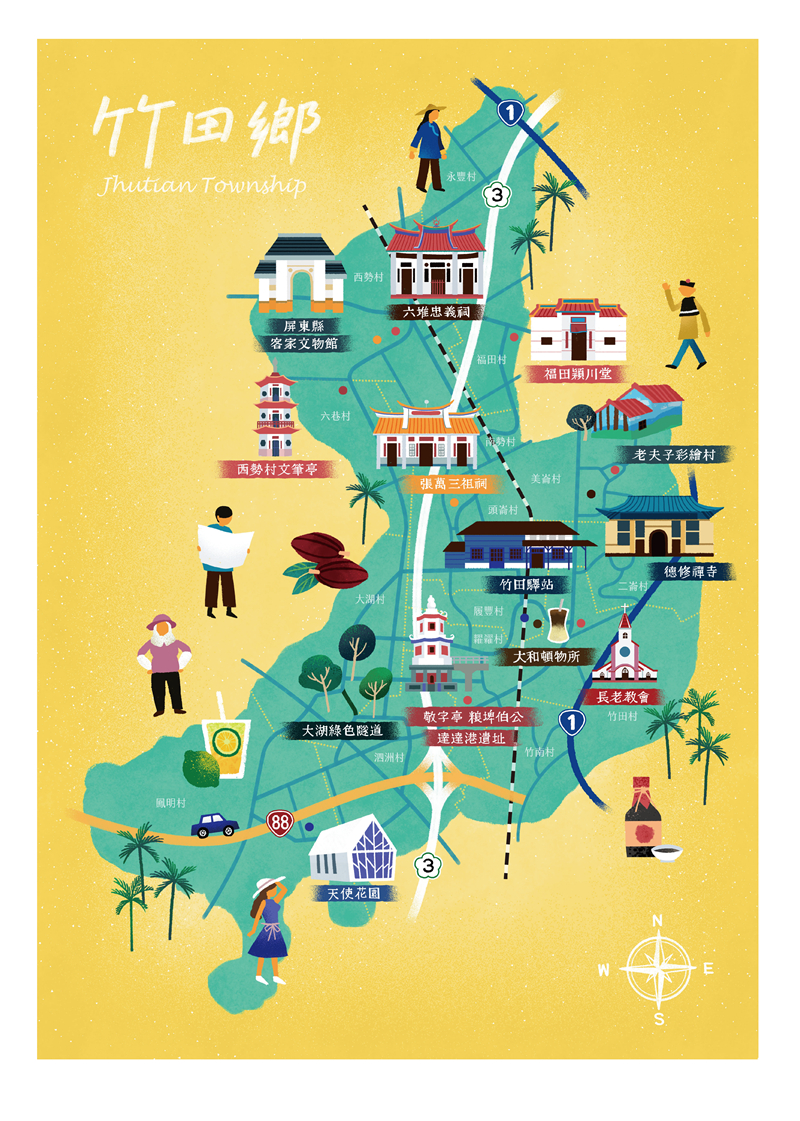09:00左營高鐵站→竹田驛園→伯公小吃→頓物堂茶養文創生活館→達達港→天使花園→旅宿屏東