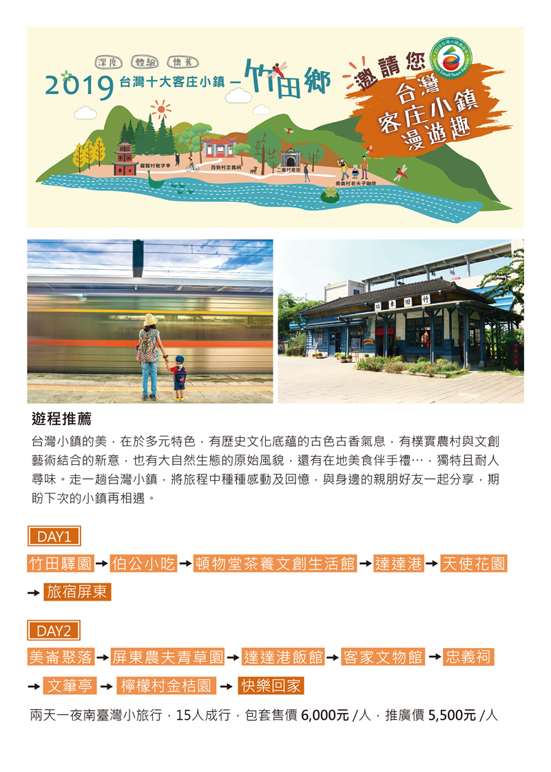09:00美崙聚落→屏東農夫青草園。達達港飯館→客家文物館→忠義祠→文筆亭→檸檬村金桔園→快樂回家(左營高鐵站)