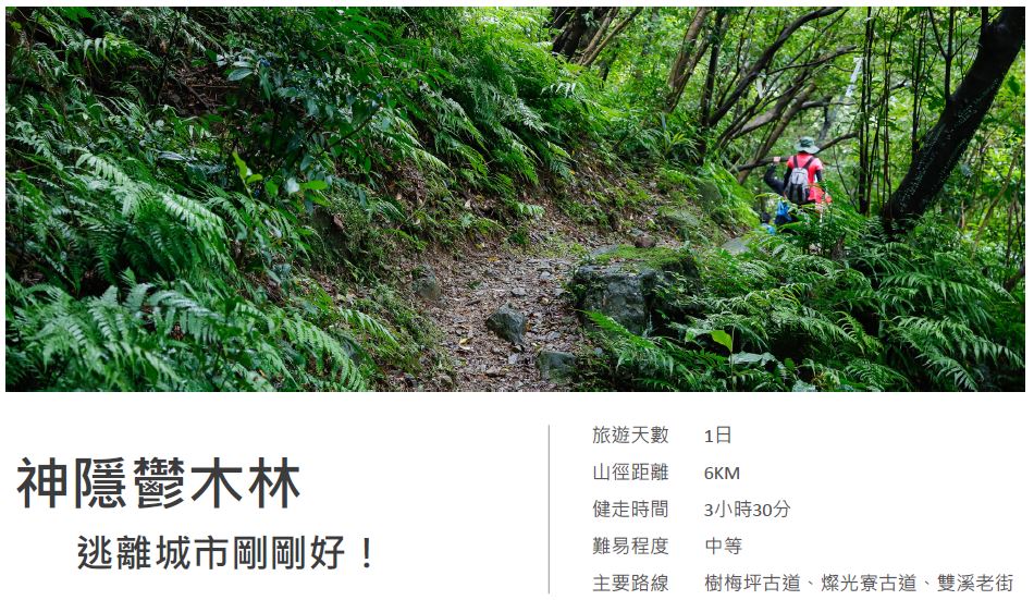 | 10:20-11:00 | 樹梅坪古道健走 | 遠眺水金九、基隆山、樹梅坪觀景台 |
