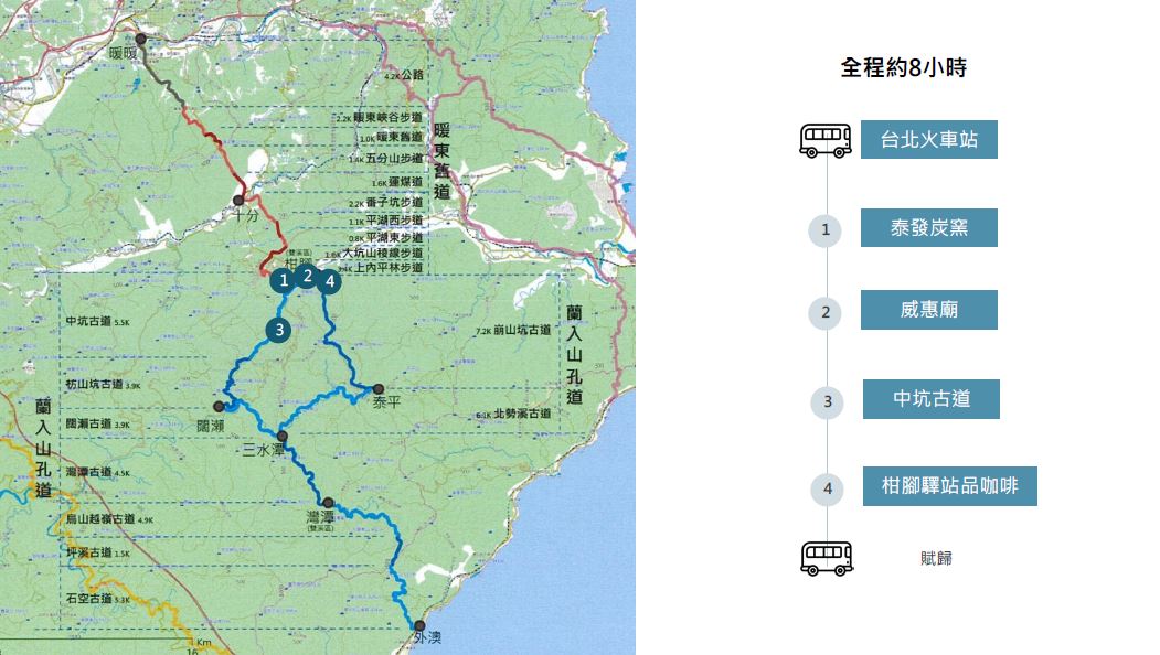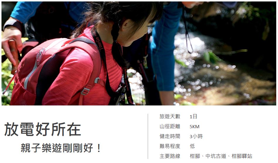 | 14:30-14:35 | 中坑古道到柑腳驛站 | 車程 |