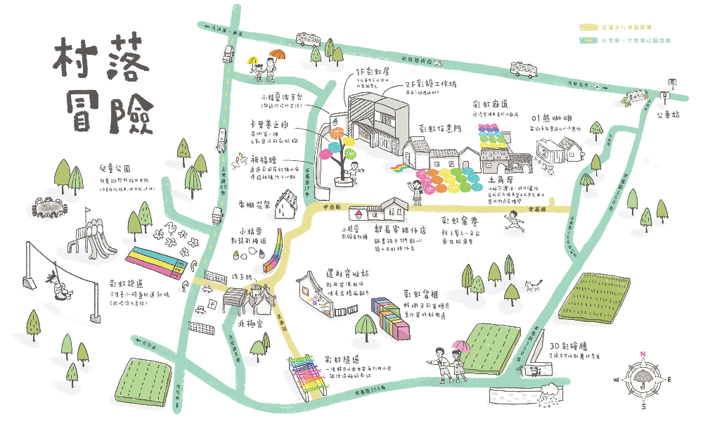 注意事項:社區多為開放空間,夏季請記得做好防曬,雨季請攜帶雨具,謝謝。