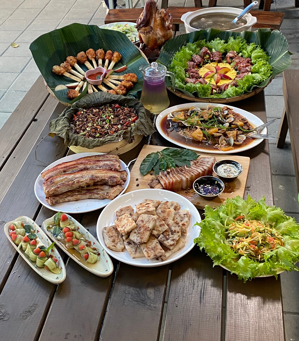 山村地方風味料理:「酸、甜、苦、辣、鹹、鮮、澀」的「人生七味餐」,結合了社區媽媽們的手藝,最能感受到在地溫暖的人情味與思念家鄉的味道。來到華南社區,用食材旅行體驗,溫暖美好的農村風景!