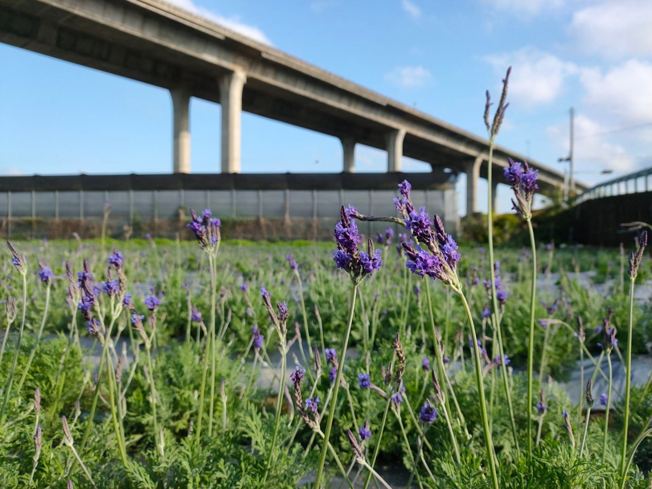 變化多端的春天裡,也有晴空萬里的時候,在這藍色的畫布裡,偶爾飄進幾朵雲,看著雲捲雲是種幸福,田間綻放紫色的薰衣草,透露著幸福。